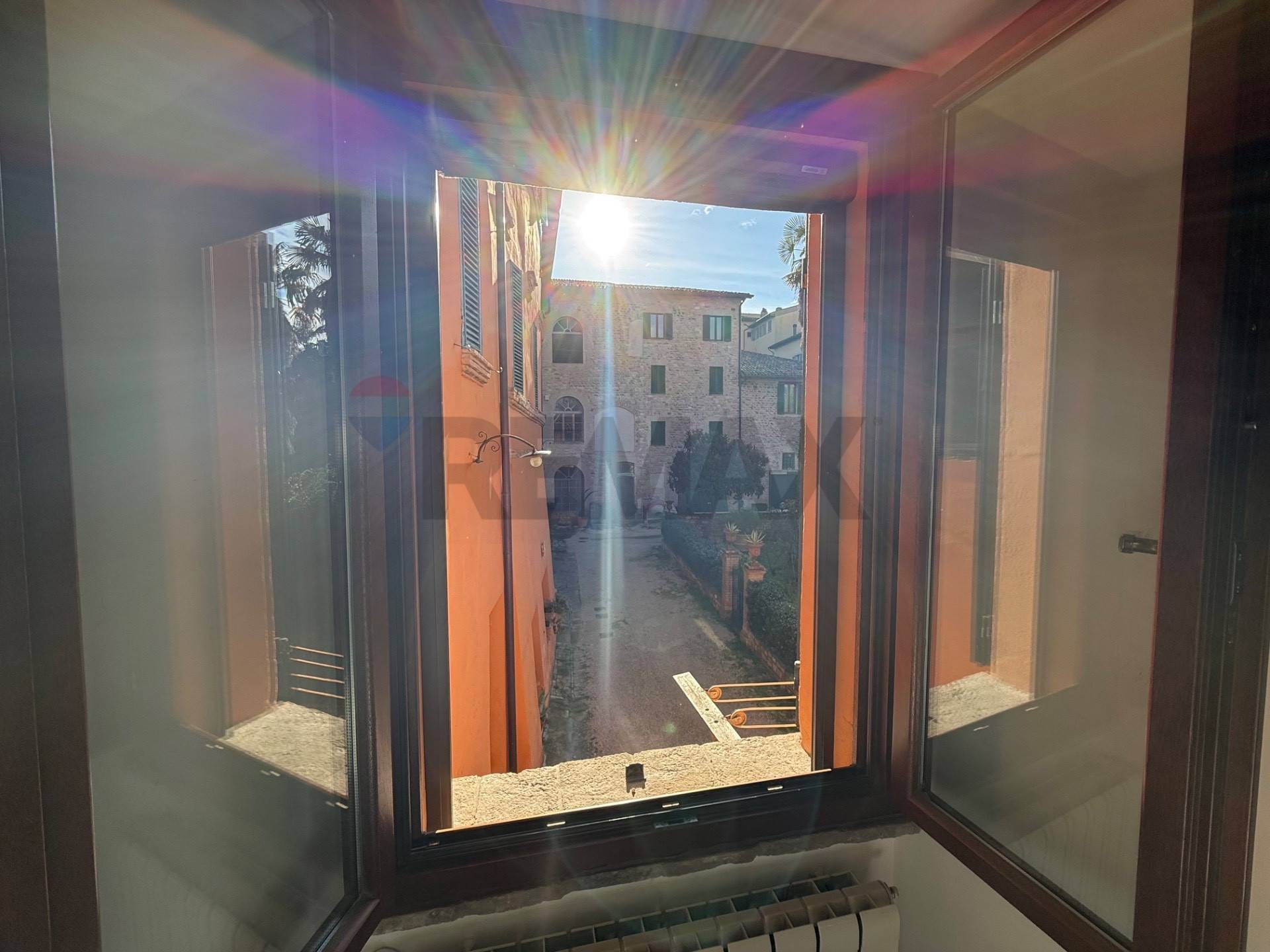 Al centro storico di Foligno e precisamente in via Del Liceo n13, disponiamo in vendita, di un appartamento al piano primo, situato in un complesso di solo tre unita' abitative, in ottime condizioni ;sia strutturali che di rifiniture. L'immobile pur trovandosi in una posizione centralissima e quindi a due passi troviamo tutti i servizi, e' caratterizzato da un doppio ingresso, il primo costituito da un portone in legno molto bello, proprio di fronte la via principale, con accesso pedonale e carrabile con apertura elettrica, ed e' esclusivo solo per i residenti, che porta nella corte comune esterna dell'immobile, il secondo appunto il portone al piano primo. Chiaramente questa condizione, fa la differenza per quanto riguarda la privacy e la sicurezza, inoltre aggiungo che gode di una posizione privilegiata, perché anche se e' a pochissima distanza, dalla frequentatissima via Gramsci e' molto silenzioso. Salendo le scale quindi arriviamo all'ingresso dell'appartamento, dove troviamo: soggiorno, cucina, due camere da letto matrimoniali, una con ripostiglio adibito a ad armadio e due bagni, di cui uno usato come lavanderia dagli attuali proprietari. L'appartamento e' molto bello, travi in legno a vista con pianelle, infissi in legno con doppio vetro e zanzariere, pavimento in cotto, riscaldamento autonomo alimentato a metano, con impianto a radiatori in alluminio. Se state cercando la vostra casa in centro storico, questa potrebbe essere quella giusta; non esitate a contattarci nei nostri uffici, saremo ben lieti di darvi ulteriori informazioni, e magari fissare un appuntamento di visita.